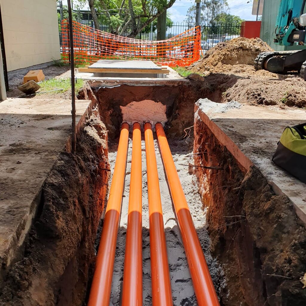 For longer distances and challenging alignments, our horizontal directional drilling services provide the installation of conduits beneath roads, driveways, pathways and sensitive or congested areas. We regularly install services for water, gas, power and telecommunications. Our capability extends to both short service connections and long-distance bores. With modern drilling rigs and experienced operators, we successfully manage installations across varying soil profiles and site constraints throughout Queensland and NSW.